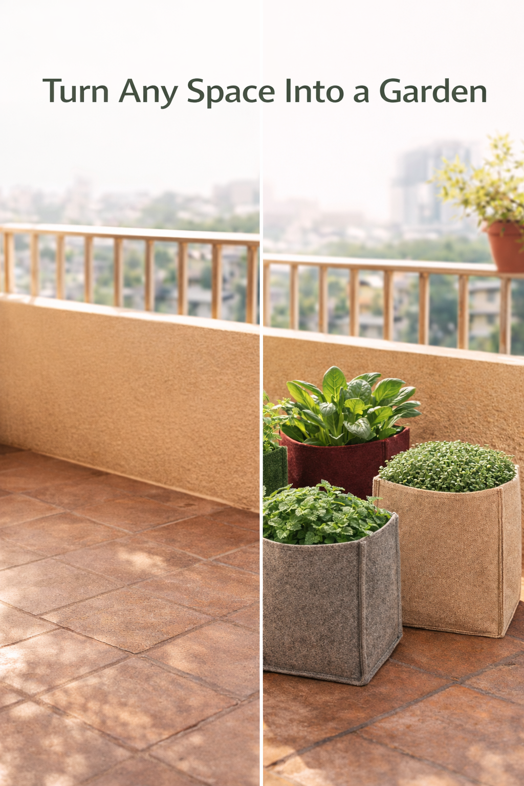 Perfect for balcony gardens, terrace setups, rooftop gardening, and kitchen gardens, these grow bags are reusable, eco-friendly, and built for Indian conditions.