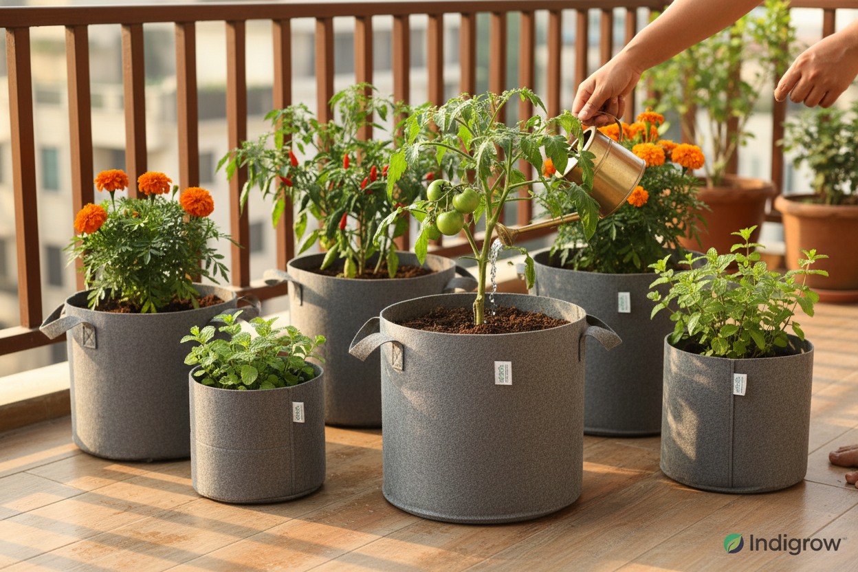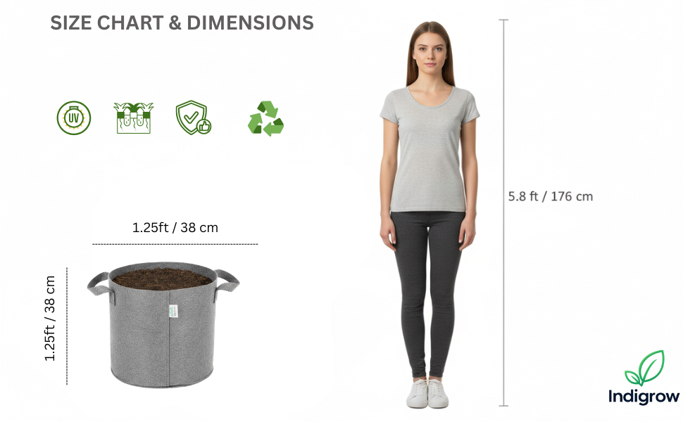 The Indigrow 15x15 Inch Geo Fabric Grow Bag is designed for gardeners who dream big — fruit trees, large ornamental plants, banana, papaya, dwarf mango, guava, and lemon plants that need serious growing space.
